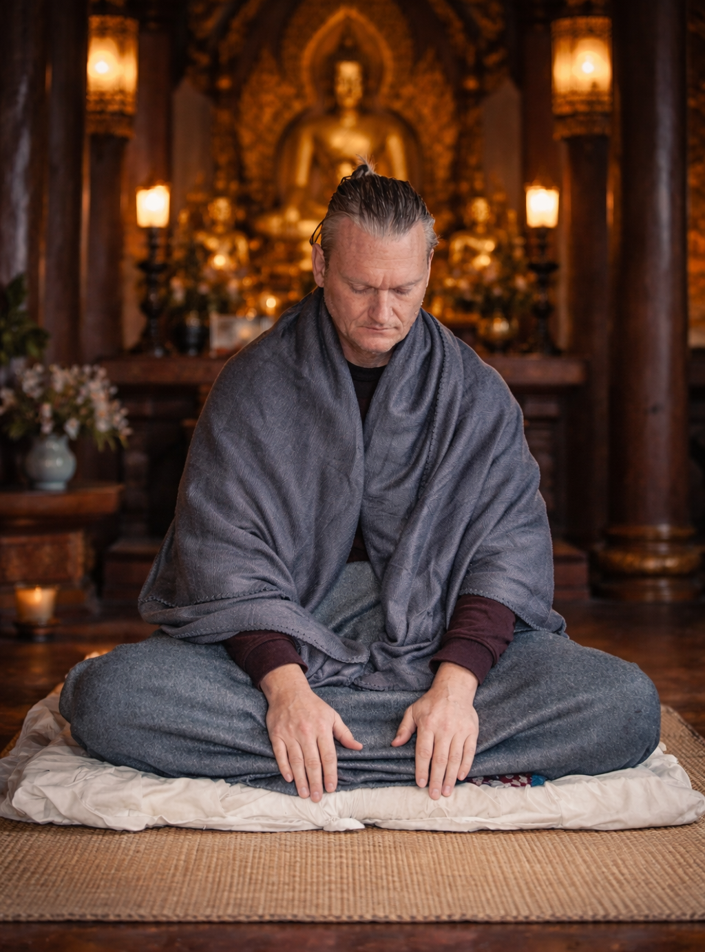 Meditation tränar man morgon och kvällen men den verkliga meditationen tränar man under hela dagen när man tränar på att leva bakom sin sjuka tankeprocess så ofta man kan.